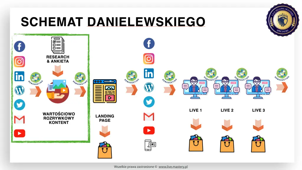 Kluczem jest ograniczenie ilości wiedzy do maksymalnie 4-5 punktów, które można łatwo wdrożyć, i skupienie się na show oraz na sprzedaży. Klienci chcą być rozrywani, ale jednocześnie szukają rozwiązań swoich problemów. Pokazując im proste kroki i budując odpowiednią narrację, jesteś w stanie prowadzić ich przez cały proces sprzedaży.